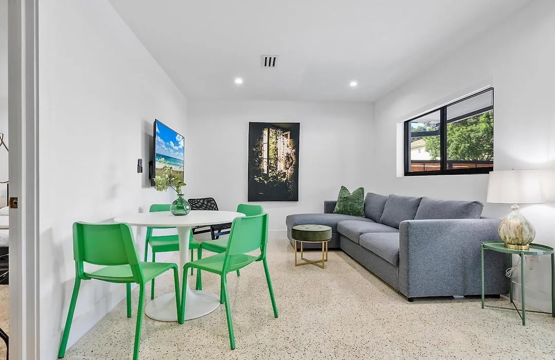 The apartment has an adjoining terrace, a living room, and a fully equipped kitchen, and comforts such as climate control. Hidden Gem Studio Near Wynwood & Beaches offers guests the convenient feature of a hair dryer in the bathroom.